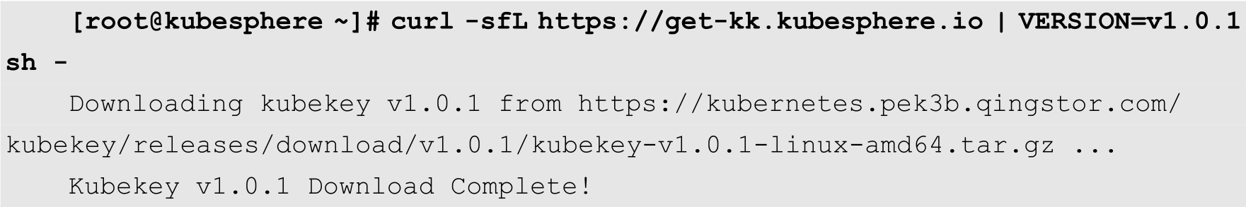 (3)接下来的操作主要是通过kk管理工具进行的,安装KubeSphere的命令如下: